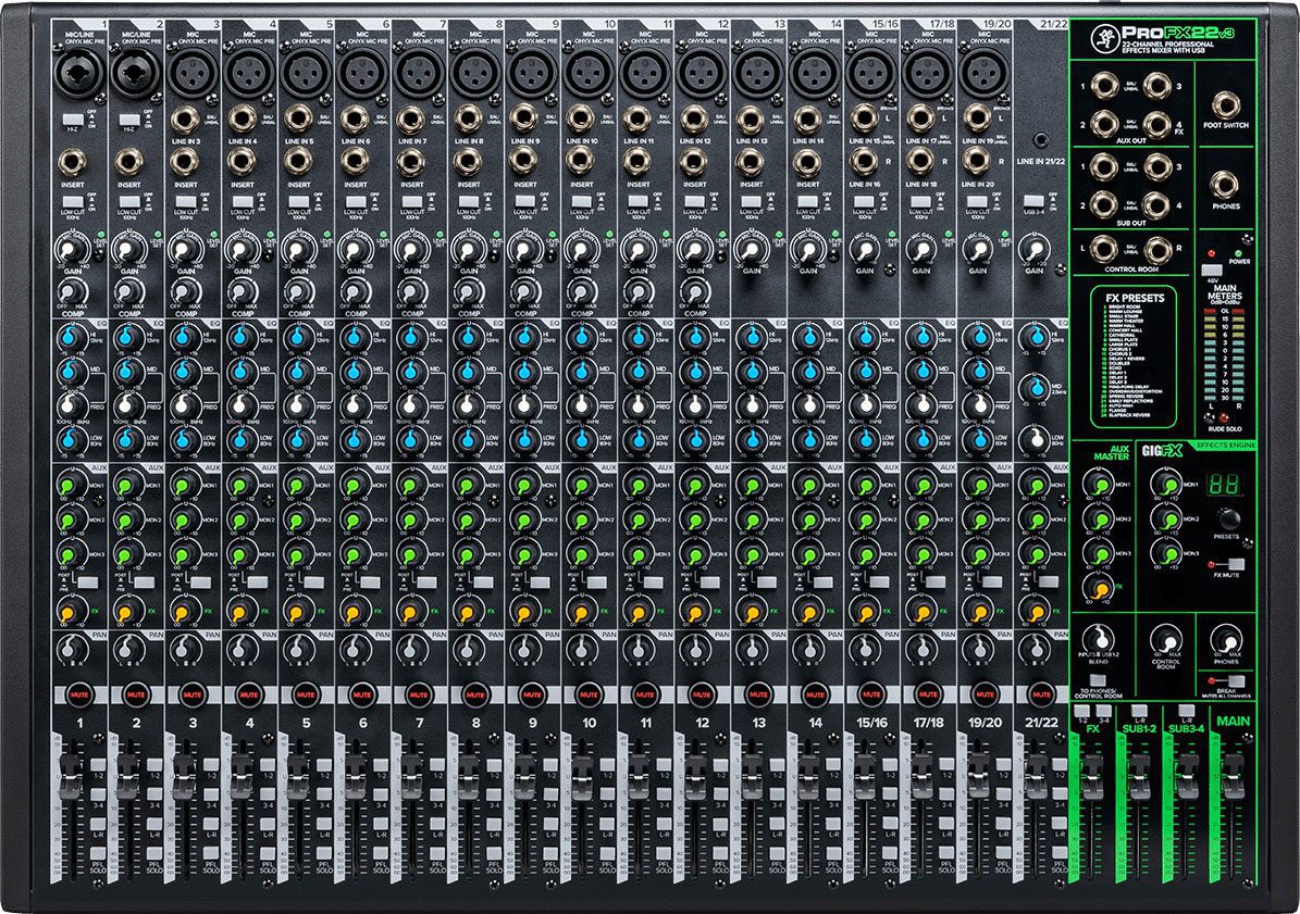 • Mezclador USB de 30 canales con 25 preamplificadores Onyx de bajo ruido y alto margen que proporcionan 60 dB de ganancia