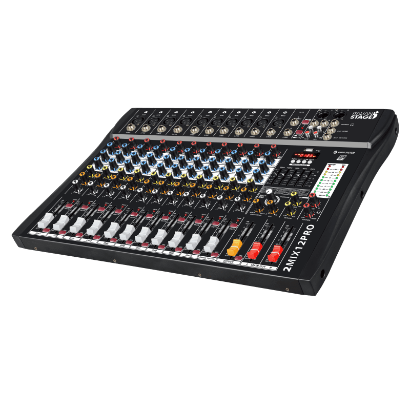 Equipada con un procesador digital DSP Multi FX, la línea italiana Stage 2MIX también funciona como interfaz de audio USB de 2+2 canales para grabación y reproducción en DAW. Los modelos de 4, 6, 8 y 12 canales incluyen audio USB con un grabador/reproductor integrado capaz de grabar archivos MP3 directamente en unidades flash USB. Puedes reproducir archivos MP3 como pistas de acompañamiento o música de fondo durante los descansos en directo.