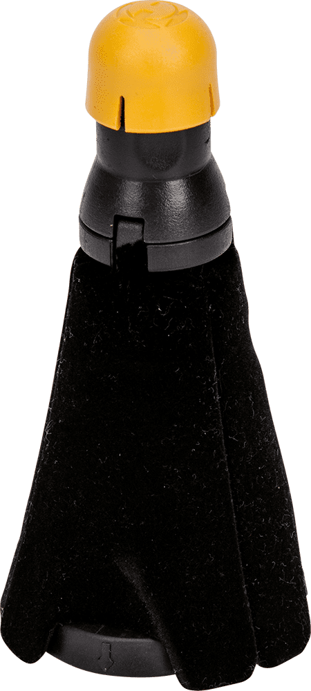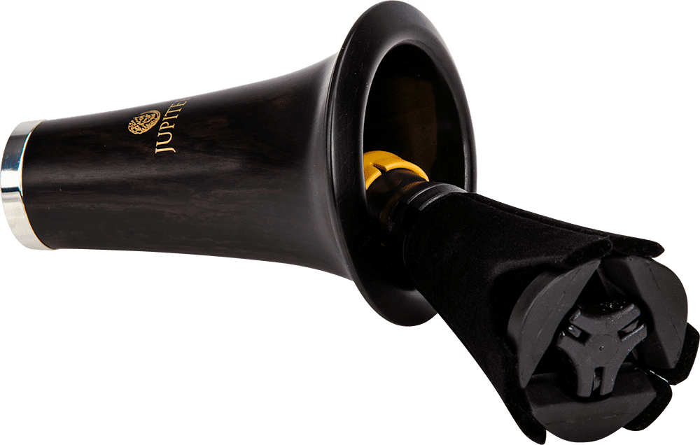 - El diseño compacto en campana permite guardar el soporte de forma segura en la campana del instrumento sin ocupar espacio en la caja del instrumento.