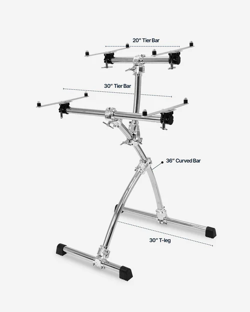 Este soporte resistente y de aspecto moderno reemplaza el tradicional soporte X inestable y anticuado y mejora la presencia en el escenario con opciones livianas, expandibles y personalizables.