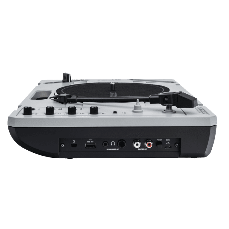 - Contenido de la caja: incluye vinilo de scratch de 7″, crossfader y cápsula de 45 mm preinstalados, altavoz integrado, receptor de audio Bluetooth, función de grabación USB, alfombrilla antideslizante y funda antipolvo.