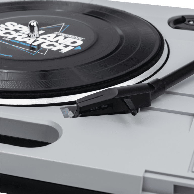 - Incluye vinilo de scratch de 7″, cartucho preinstalado, alfombrilla antideslizante, funda antipolvo, adaptador de disco, cable USB y manual de instrucciones.
