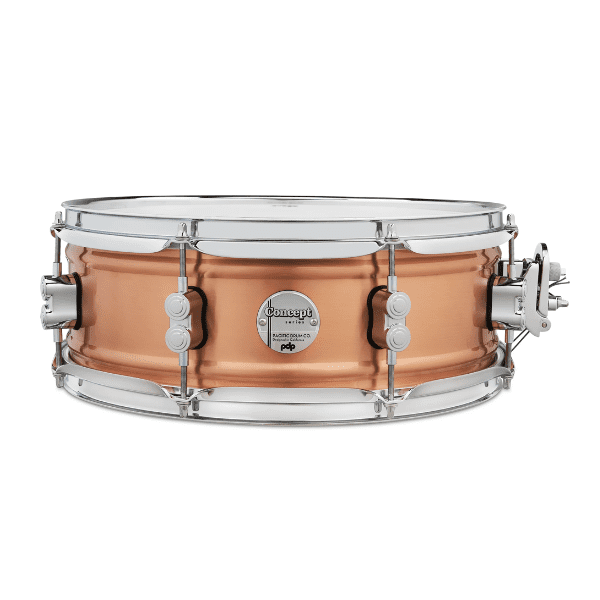 Esta caja de cobre de la serie Concept cuenta con un casco de cobre de 1,2 mm, laminado y con doble perla, para un tono más grave, y cepillado para un brillo llamativo. Los cascos de cobre ofrecen un ataque y una musicalidad similares a los del aluminio o el latón, pero con un carácter sonoro más cálido y oscuro. Los herrajes cromados incorporan elegantes soportes de doble torreta y accesorios DW de alta gama, como un MAG Throw-off, varillas de afinación True-Pitch y parches Remo. *